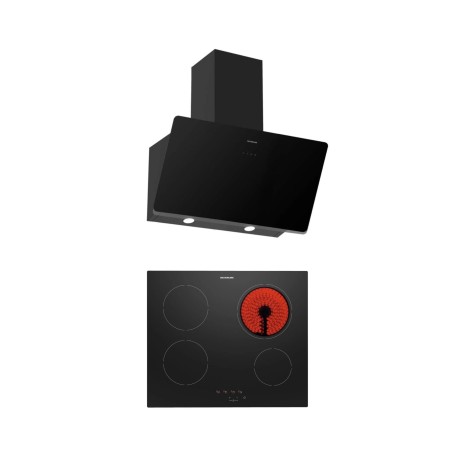 Silverline İkili Siyah Ankastre Set (3457 Soho Siyah Davlumbaz - VC8210B01 Siyah Elektrikli Ocak)